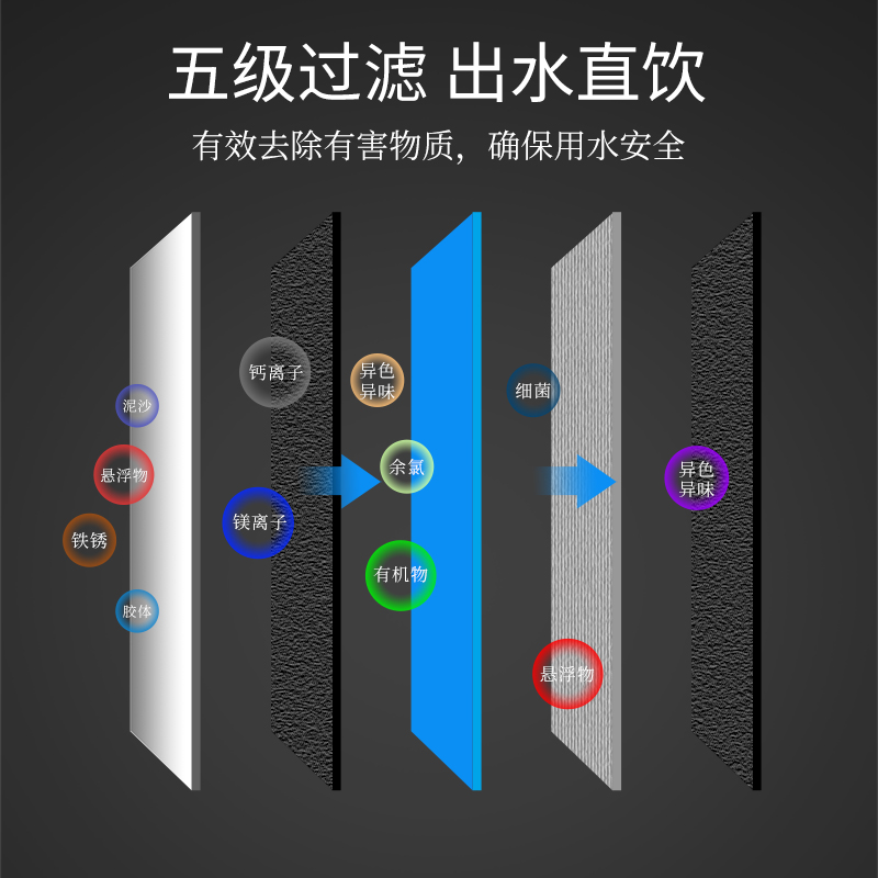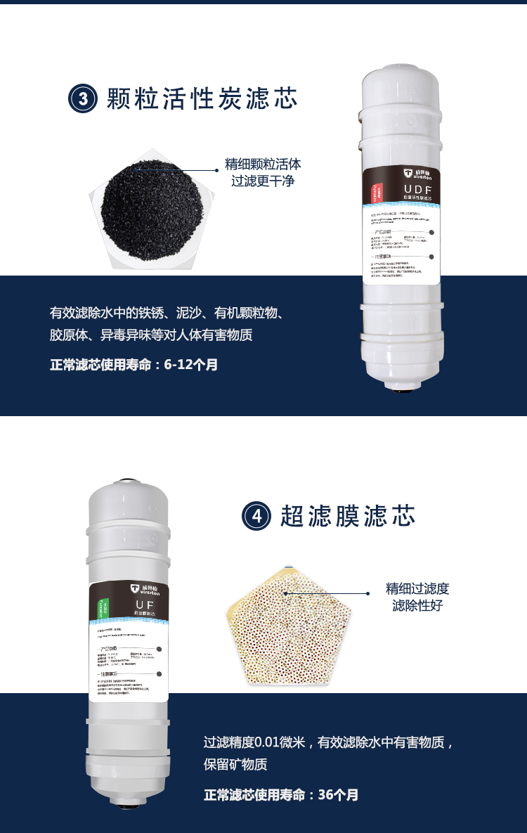 PP棉+UDF颗粒活性炭+CTO烧结炭+UF超滤膜+GAC后置活性炭